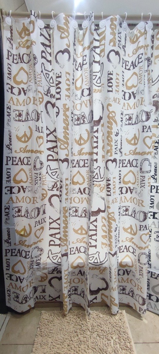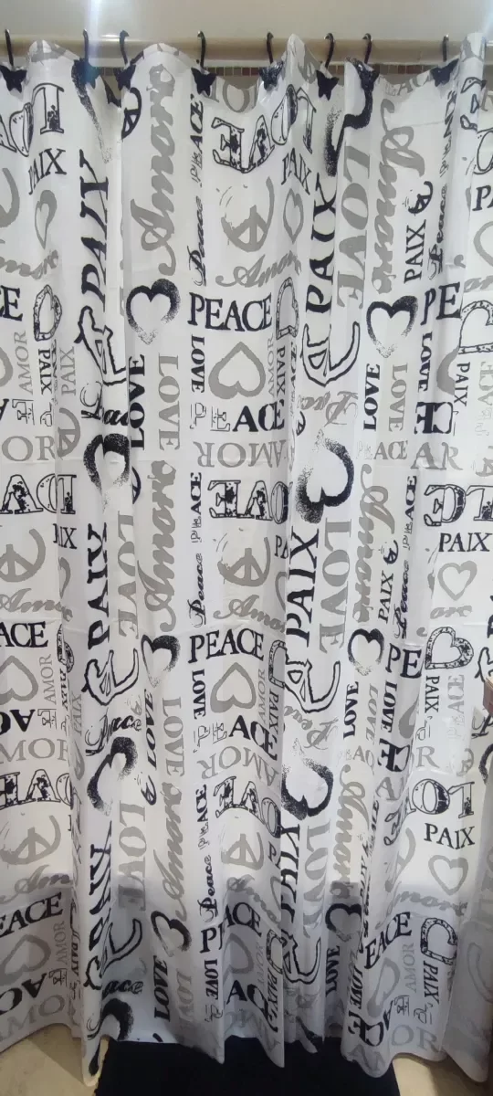 Cortinas dobles con frases y símbolos (PAZ, AMOR)