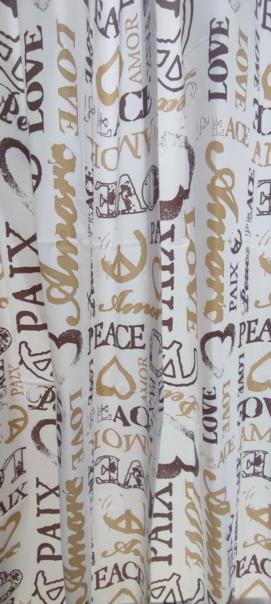 Cortinas dobles con frases y símbolos (PAZ, AMOR)