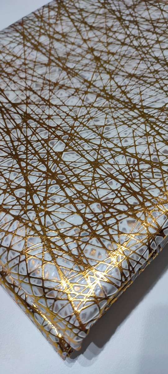 Blanco con LÍNEAS EN relieve en dorado.