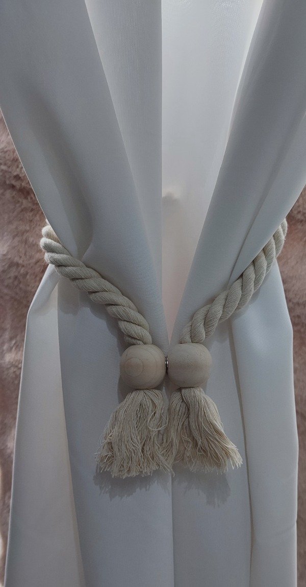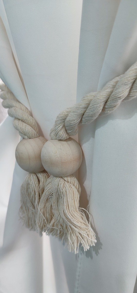 2 sujetadores de cortinas con bolas de madera imantadas.