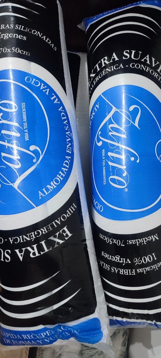 Almohadas de vellón siliconado, envasadas al vacío. Vuelven a su estado una vez sacadas del envoltorio.