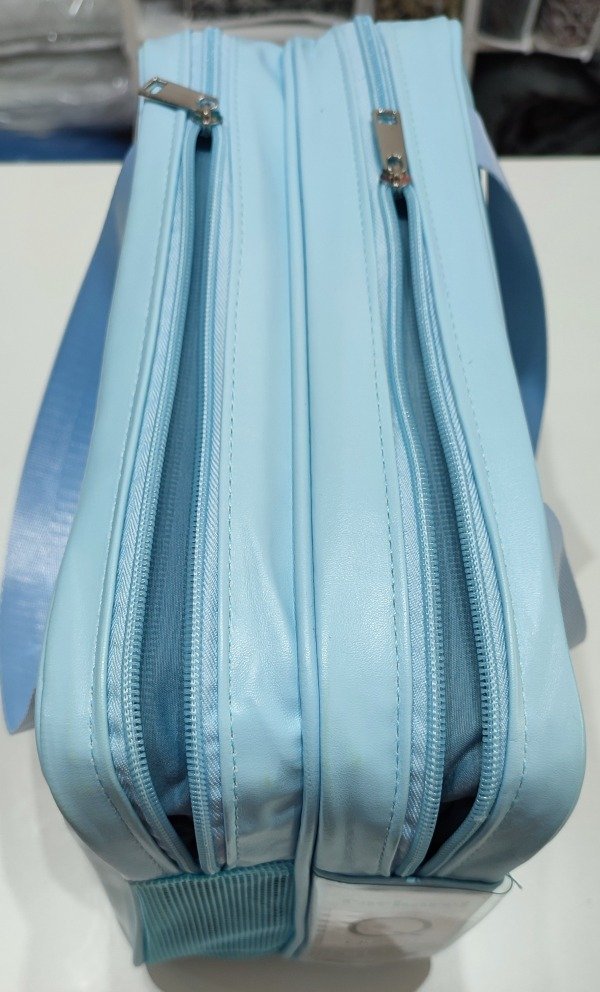 Excelente presentación en Bolso de cuerina totalmente reforzado de doble compartimento. Con 2 cierres.