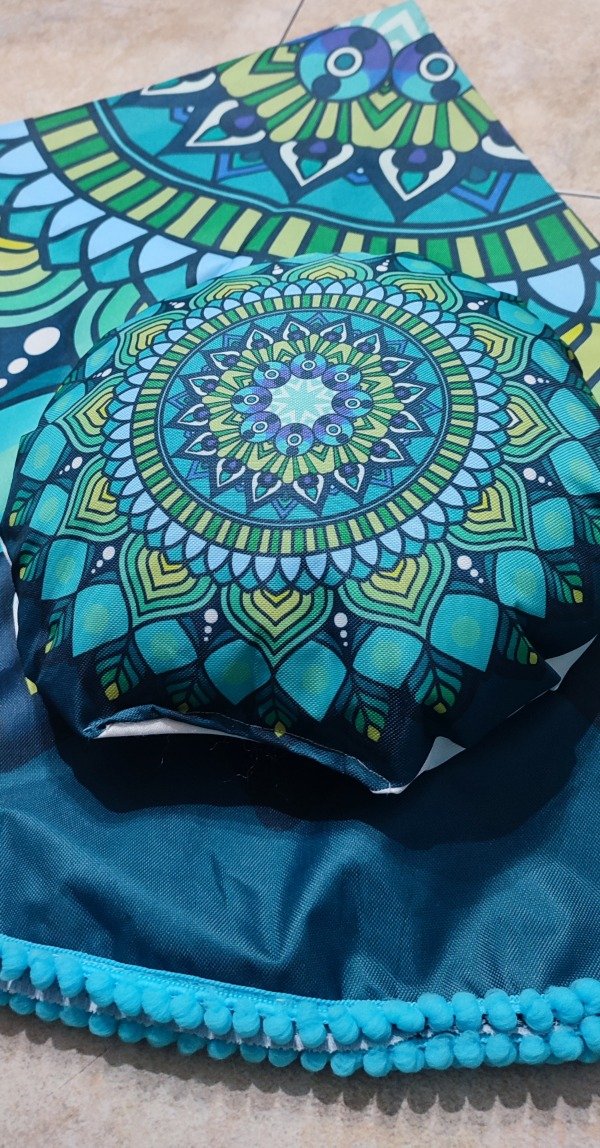 Lona de Playa/pileta/ aire libre de 1.50 m de diámetro con almohadón al tono 30 cm diam